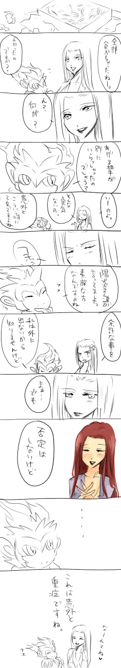 らくがき帳気の向くままにラクガキしてます。PAGE | 22 23 24 25 26 27 28 29 30 31 | ADMIN | WRITE 2009.02.16 Mon 03:46:49 過ぎたネッ。なんとかバレンタイン漫画完成したのはいいけど長すぎたなー・・。 SAIに拒否されるってどういうことですかっ。 あといつも荒削りな自分。もっと綺麗な線で描きたい・・。 とりあえず寝てこよう。 2009.02.14 Sat 00:51:57 ハッピーヴァ!本格的に間に合うか心配。 ネームの段階でいつも以上に長かった。 どこかを削らなければ。上手くまとめるというのが出来ない・・。 とりあえず今回も紅がひどいということはたしかだね(・3・) そしていつも謝ってばかりの自分。 ここで先に謝ってしまおう。ごめんなさい。 2009.02.13 Fri 07:32:45 紅と紅紅の捕捉と家族についていろいろ追加しましたー・・。 家族説明はドロワーに描いてたやつとあまり変わりませんが。 家族の詳細やってる途中で画面消えて殴りたくなった・・。2度打ち・・。 畜生。 紅2人いたらごちゃごちゃだっ! でも本名はもう少し後になりそうだっ。 |